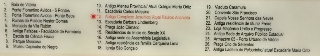 Um dos pontos é o Palácio do Governo, mais conhecido como Palácio Anchieta. Hoje abriga exposições e tem uma importância política para o Estado.