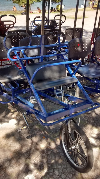 Quer dar uma voltinha em toda a praça, admirando a orla tranquilamente? Tem aluguel de bike triciclo – que costuma caber toda a família numa só – por R$ 25,00 a hora.